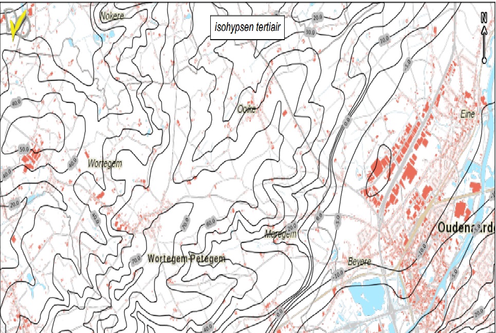 bepaal de dikte van het quartair (noteer zelf de waarde van de isopachen op de kaart ).