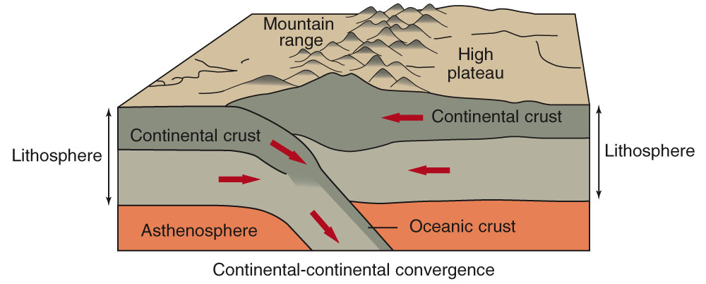 Tijdens de botsing wordt de voormalige oceaan (en zijn sedimenten) tussen de continenten dichtgeknepen en omhoog geperst.